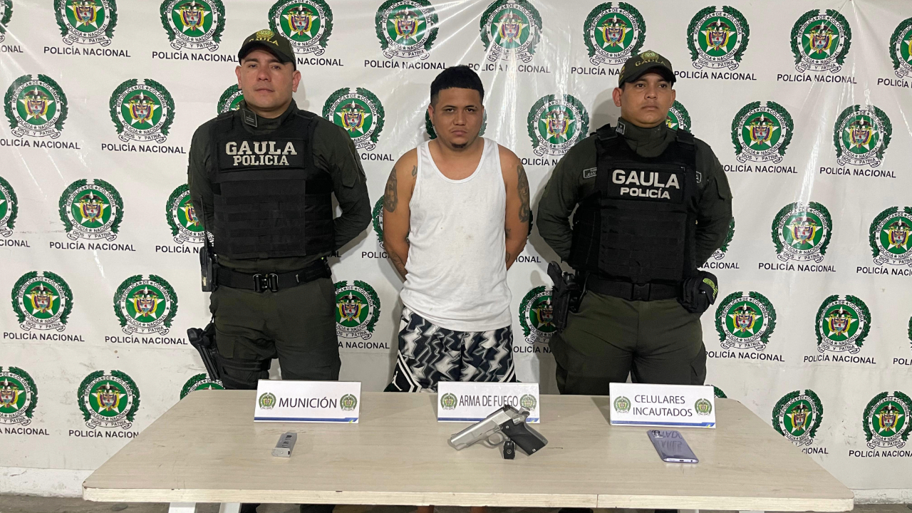Durante el operativo fueron incautados un arma de fuego tipo pistola, un cargador para pistola, tres cartuchos calibre 45 milímetros y un teléfono celular.