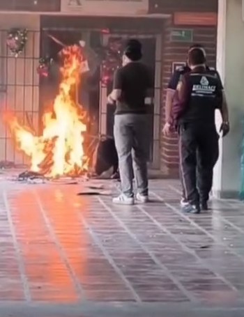 Igualmente, fueron pintados grafitis y prendieron fuego a los pendones de Barrios.